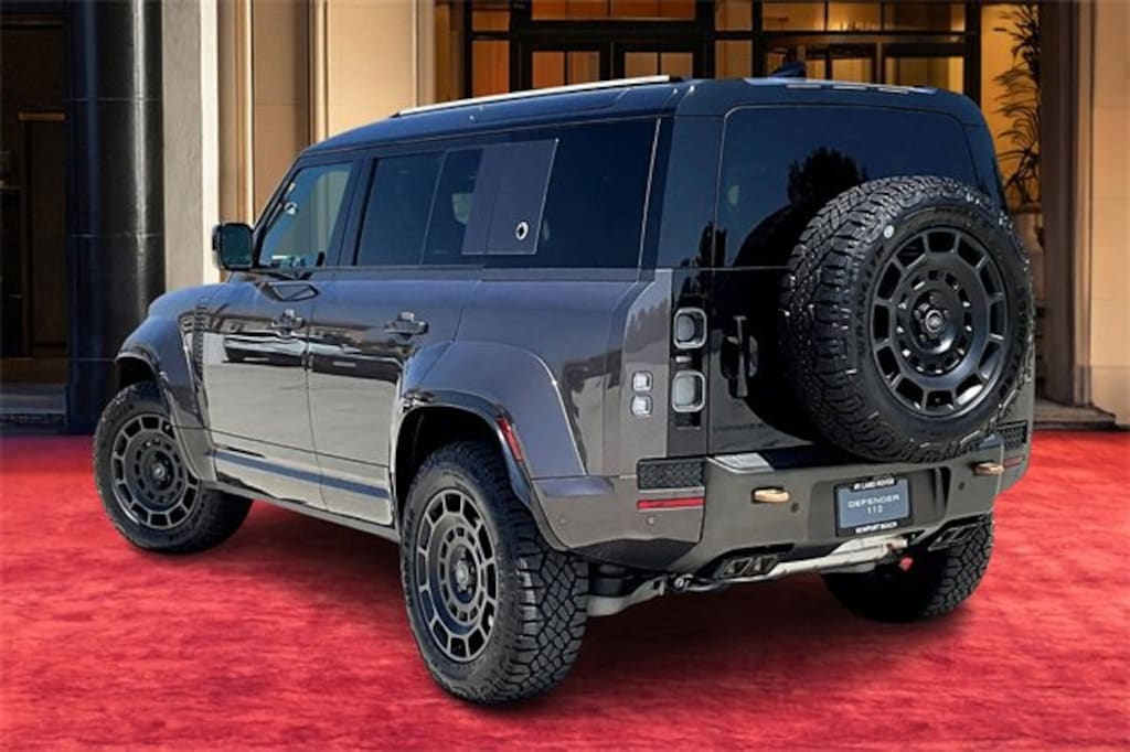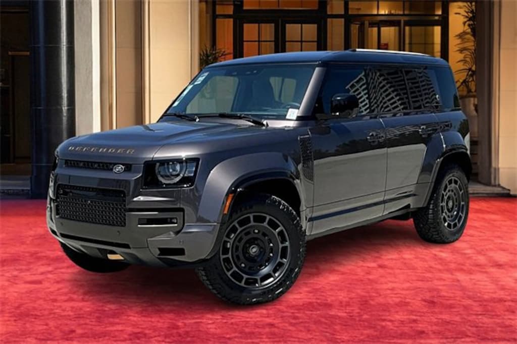 Defender 110 V8, 4D Sport Utility, 4.4L V8 DI Turbocharged DOHC 32V LEV3-ULEV125 626hp, 8-Speed Automatic, 4WD, Charente Gry, Ebony w/Semi-Aniline Leather & Kvadrat Seat Trim, 14-Way Htd/Cooled Electric Memory Body & Soul Seats, 15 Speakers, 4-Wheel Disc Brakes, ABS brakes, Adaptive suspension, Air Conditioning, Alloy wheels, AM/FM radio: SiriusXM, Apple CarPlay & Android Auto, Auto High-beam Headlights, Auto tilt-away steering wheel, Auto-dimming door mirrors, Auto-dimming Rear-View mirror, Automatic temperature control, Brake assist, Bumpers: body-color, Compass, Delay-off headlights, Driver door bin, Driver vanity mirror, Dual front impact airbags, Dual front side impact airbags, Electronic Stability Control, Exterior Parking Camera Rear, Four wheel independent suspension, Front anti-roll bar, Front Bucket Seats, Front Center Armrest, Front dual zone A/C, Front fog lights, Front reading lights, Fully automatic headlights, Garage door transmitter: HomeLink, Headlight cleaning, Heads-Up Display, Heated door mirrors, Heated front seats, Heated rear seats, Heated steering wheel, Illuminated entry, Leather Shift Knob, Leather steering wheel, Low tire pressure warning, Memory seat, Navigation system: Connected Navigation PIVI Pro, Occupant sensing airbag, Outside temperature display, Overhead airbag, Overhead console, Panic alarm, Passenger door bin, Passenger vanity mirror, Perforated Ultrafabrics Seat Trim, Power door mirrors, Power driver seat, Power moonroof, Power passenger seat, Power steering, Power windows, Radio data system, Radio: Meridian Surround Sound System, Rain sensing wipers, Rear air conditioning, Rear anti-roll bar, Rear fog lights, Rear reading lights, Rear seat center armrest, Rear window defroster, Rear window wiper, Remote keyless entry, Security system, Semi-Aniline Leather & Kvadrat Seat Trim, Speed control, Speed-sensing steering, Speed-Sensitive Wipers, Split folding rear seat, Sport steering wheel, Steering wheel memory, Steering wheel mounted audio controls, Tachometer, Telescoping steering wheel, Tilt steering wheel, Traction control, Trip computer, Variably intermittent wipers, Ventilated front seats, Weather band radio, Wheels: 20" Diamond Turned Style 1086, Wheels: 22" Gloss Black Style 7026.